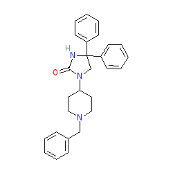 | SMILES | O=C1NC(c2ccccc2)(c2ccccc2)CN1C1CCN(Cc2ccccc2)CC1 |