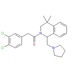 | SMILES | CC1(C)CN(C(=O)Cc2ccc(Cl)c(Cl)c2)C(CN2CCCC2)c2ccccc21 |