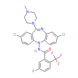 | SMILES | CN1CCN(C2=Nc3cc(Cl)ccc3N(NC(=O)c3cc(F)ccc3C(F)(F)F)c3ccc(Cl)cc32)CC1 |