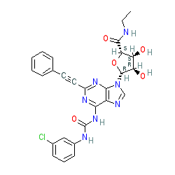 | SMILES | CCNC(=O)[C@H]1O[C@@H](n2cnc3c(NC(=O)Nc4cccc(Cl)c4)nc(C#Cc4ccccc4)nc32)[C@H](O)[C@@H]1O |