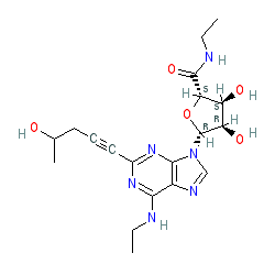 | SMILES | CCNC(=O)[C@H]1O[C@@H](n2cnc3c(NCC)nc(C#CCC(C)O)nc32)[C@H](O)[C@@H]1O |