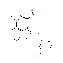 | SMILES | OC[C@@H]1CCCN1c1ncnc2sc(Nc3cccc(Br)c3)nc12 |
