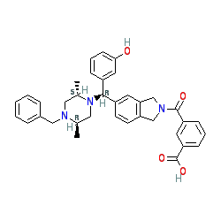 | SMILES | C[C@H]1CN(Cc2ccccc2)[C@H](C)CN1[C@@H](c1cccc(O)c1)c1ccc2c(c1)CN(C(=O)c1cccc(C(=O)O)c1)C2 |