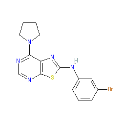 | SMILES | Brc1cccc(Nc2nc3c(N4CCCC4)ncnc3s2)c1 |