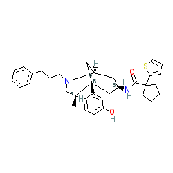 | SMILES | C[C@H]1CN(CCCc2ccccc2)[C@@H]2C[C@@H](NC(=O)C3(c4cccs4)CCCC3)C[C@@]1(c1cccc(O)c1)C2 |