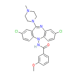 | SMILES | COc1cccc(C(=O)NN2c3ccc(Cl)cc3N=C(N3CCN(C)CC3)c3cc(Cl)ccc32)c1 |
