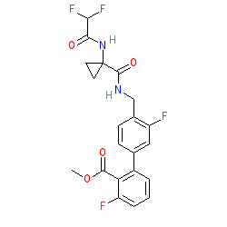 | SMILES | COC(=O)c1c(F)cccc1-c1ccc(CNC(=O)C2(NC(=O)C(F)F)CC2)c(F)c1 |