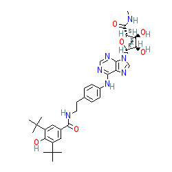 | SMILES | CNC(=O)[C@H]1O[C@@H](n2cnc3c(Nc4ccc(CCNC(=O)c5cc(C(C)(C)C)c(O)c(C(C)(C)C)c5)cc4)ncnc32)[C@H](O)[C@@H]1O |
