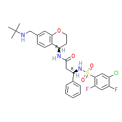 | SMILES | CC(C)(C)NCc1ccc2c(c1)OCC[C@H]2NC(=O)C[C@@H](NS(=O)(=O)c1cc(Cl)c(F)cc1F)c1ccccc1 |
