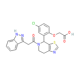 | SMILES | O=C(O)COc1ccc(Cl)cc1C1c2scnc2CCN1C(=O)Cc1n[nH]c2ccccc12 |