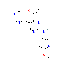 | SMILES | COc1ccc(Nc2ncc(-c3ccncn3)c(-c3ccco3)n2)cn1 |