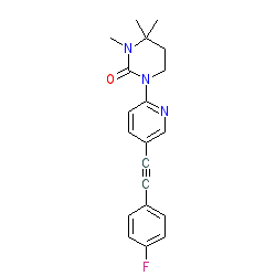 | SMILES | CN1C(=O)N(c2ccc(C#Cc3ccc(F)cc3)cn2)CCC1(C)C |