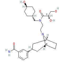 | SMILES | NC(=O)c1cccc([C@@H]2C[C@@H]3CC[C@H](C2)N3CCN(C[C@H]2CC[C@H](O)CC2)C(=O)[C@@H](O)CO)c1 |