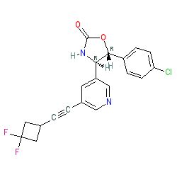 | SMILES | O=C1N[C@H](c2cncc(C#CC3CC(F)(F)C3)c2)[C@@H](c2ccc(Cl)cc2)O1 |