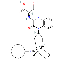| SMILES | C[C@]12CC[C@H](C[C@H](N3C(=O)C(N[C@@H](CO)C(=O)O)Nc4ccccc43)C1)N2C1CCCCCCC1 |