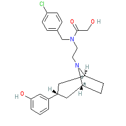 | SMILES | O=C(CO)N(CCN1[C@H]2CC[C@@H]1C[C@H](c1cccc(O)c1)C2)Cc1ccc(Cl)cc1 |