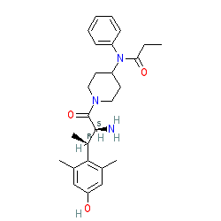 | SMILES | CCC(=O)N(c1ccccc1)C1CCN(C(=O)[C@@H](N)[C@H](C)c2c(C)cc(O)cc2C)CC1 |