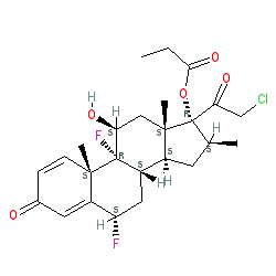 | SMILES | CCC(=O)O[C@]1(C(=O)CCl)[C@@H](C)C[C@H]2[C@@H]3C[C@H](F)C4=CC(=O)C=C[C@]4(C)[C@@]3(F)[C@@H](O)C[C@@]21C |