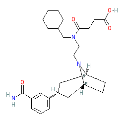 | SMILES | NC(=O)c1cccc([C@@H]2C[C@@H]3CC[C@H](C2)N3CCN(CC2CCCCC2)C(=O)CCC(=O)O)c1 |