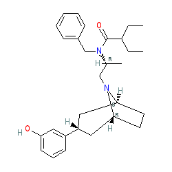 | SMILES | CCC(CC)C(=O)N(Cc1ccccc1)[C@H](C)CN1[C@H]2CC[C@@H]1C[C@H](c1cccc(O)c1)C2 |