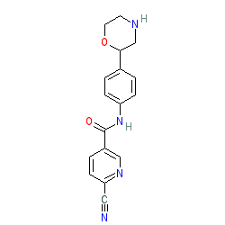 | SMILES | N#Cc1ccc(C(=O)Nc2ccc(C3CNCCO3)cc2)cn1 |