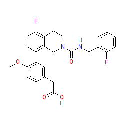 | SMILES | COc1ccc(CC(=O)O)cc1-c1ccc(F)c2c1CN(C(=O)NCc1ccccc1F)CC2 |