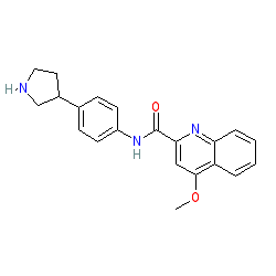 | SMILES | COc1cc(C(=O)Nc2ccc(C3CCNC3)cc2)nc2ccccc12 |