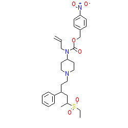 | SMILES | C=CCN(C(=O)OCc1ccc([N+](=O)[O-])cc1)C1CCN(CCC(CC(C)S(=O)(=O)CC)c2ccccc2)CC1 |