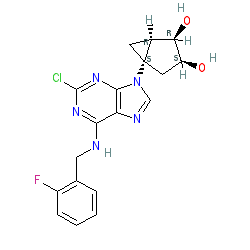 | SMILES | O[C@H]1C[C@@]2(n3cnc4c(NCc5ccccc5F)nc(Cl)nc43)C[C@H]2[C@H]1O |
