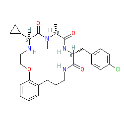 | SMILES | C[C@@H]1C(=O)N[C@H](Cc2ccc(Cl)cc2)C(=O)NCCCc2ccccc2OCCN[C@@H](C2CC2)C(=O)N1C |