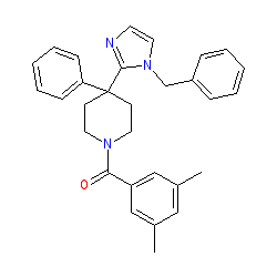 | SMILES | Cc1cc(C)cc(C(=O)N2CCC(c3ccccc3)(c3nccn3Cc3ccccc3)CC2)c1 |