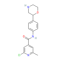 | SMILES | Cc1cc(C(=O)Nc2ccc(C3CNCCO3)cc2)cc(Cl)n1 |