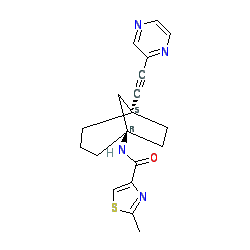 | SMILES | Cc1nc(C(=O)N[C@]23CCC[C@](C#Cc4cnccn4)(CC2)C3)cs1 |