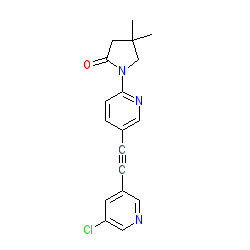 | SMILES | CC1(C)CC(=O)N(c2ccc(C#Cc3cncc(Cl)c3)cn2)C1 |