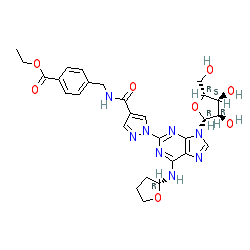 | SMILES | CCOC(=O)c1ccc(CNC(=O)c2cnn(-c3nc(N[C@H]4CCCO4)c4ncn([C@@H]5O[C@H](CO)[C@@H](O)[C@H]5O)c4n3)c2)cc1 |
