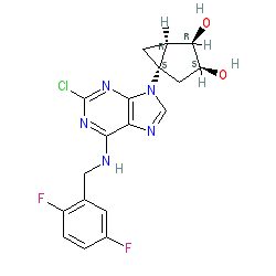 | SMILES | O[C@H]1C[C@@]2(n3cnc4c(NCc5cc(F)ccc5F)nc(Cl)nc43)C[C@H]2[C@H]1O |