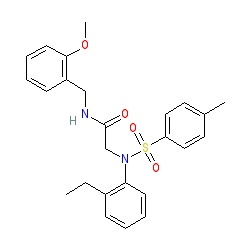 | SMILES | CCc1ccccc1N(CC(=O)NCc1ccccc1OC)S(=O)(=O)c1ccc(C)cc1 |