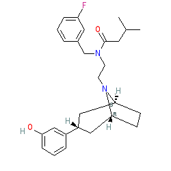| SMILES | CC(C)CC(=O)N(CCN1[C@H]2CC[C@@H]1C[C@H](c1cccc(O)c1)C2)Cc1cccc(F)c1 |