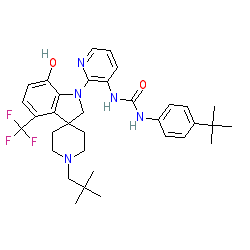 | SMILES | CC(C)(C)CN1CCC2(CC1)CN(c1ncccc1NC(=O)Nc1ccc(C(C)(C)C)cc1)c1c(O)ccc(C(F)(F)F)c12 |