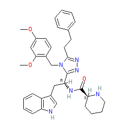 | SMILES | COc1ccc(Cn2c(CCc3ccccc3)nnc2[C@@H](Cc2c[nH]c3ccccc23)NC(=O)[C@@H]2CCCCN2)c(OC)c1 |