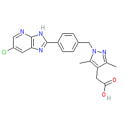 | SMILES | Cc1nn(Cc2ccc(-c3nc4cc(Cl)cnc4[nH]3)cc2)c(C)c1CC(=O)O |