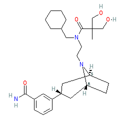 | SMILES | CC(CO)(CO)C(=O)N(CCN1[C@H]2CC[C@@H]1C[C@H](c1cccc(C(N)=O)c1)C2)CC1CCCCC1 |