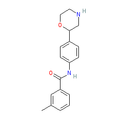 | SMILES | Cc1cccc(C(=O)Nc2ccc(C3CNCCO3)cc2)c1 |
