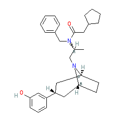 | SMILES | C[C@H](CN1[C@H]2CC[C@@H]1C[C@H](c1cccc(O)c1)C2)N(Cc1ccccc1)C(=O)CC1CCCC1 |