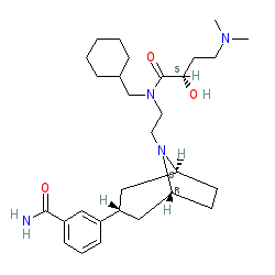 | SMILES | CN(C)CC[C@H](O)C(=O)N(CCN1[C@H]2CC[C@@H]1C[C@H](c1cccc(C(N)=O)c1)C2)CC1CCCCC1 |
