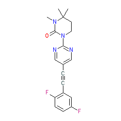 | SMILES | CN1C(=O)N(c2ncc(C#Cc3cc(F)ccc3F)cn2)CCC1(C)C |
