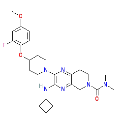 | SMILES | COc1ccc(OC2CCN(c3nc4c(nc3NC3CCC3)CN(C(=O)N(C)C)CC4)CC2)c(F)c1 |