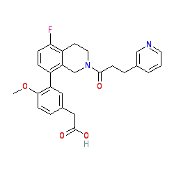 | SMILES | COc1ccc(CC(=O)O)cc1-c1ccc(F)c2c1CN(C(=O)CCc1cccnc1)CC2 |