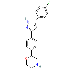 | SMILES | Clc1ccc(-c2cc(-c3ccc(C4CNCCO4)cc3)n[nH]2)cc1 |