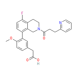 | SMILES | COc1ccc(CC(=O)O)cc1-c1ccc(F)c2c1CN(C(=O)CCc1ccccn1)CC2 |
